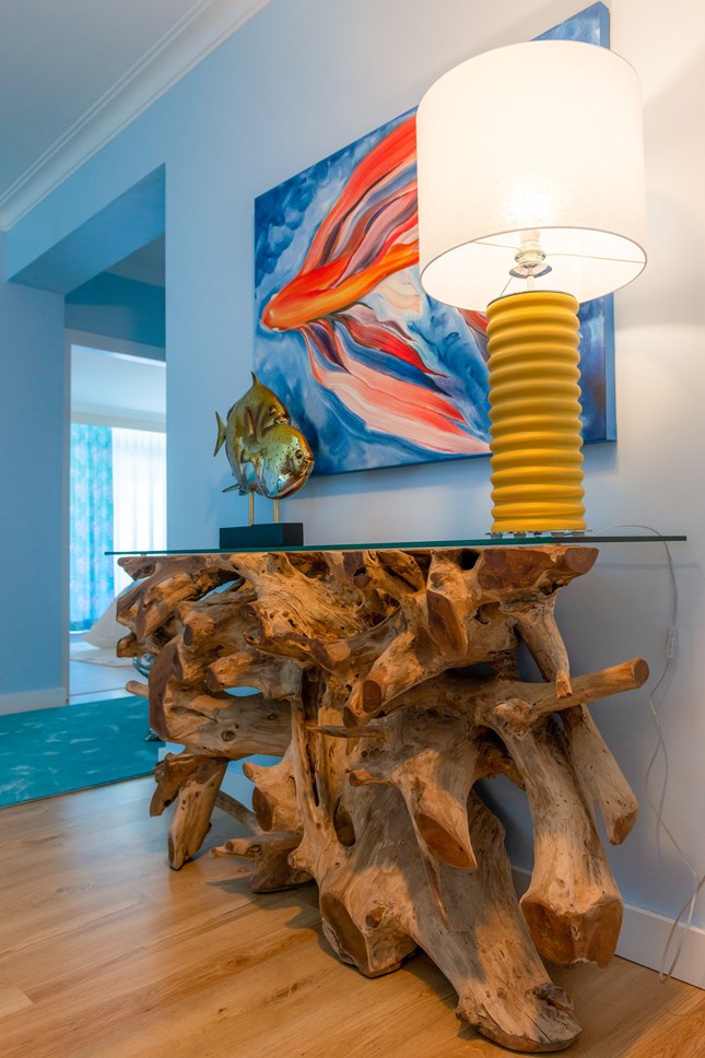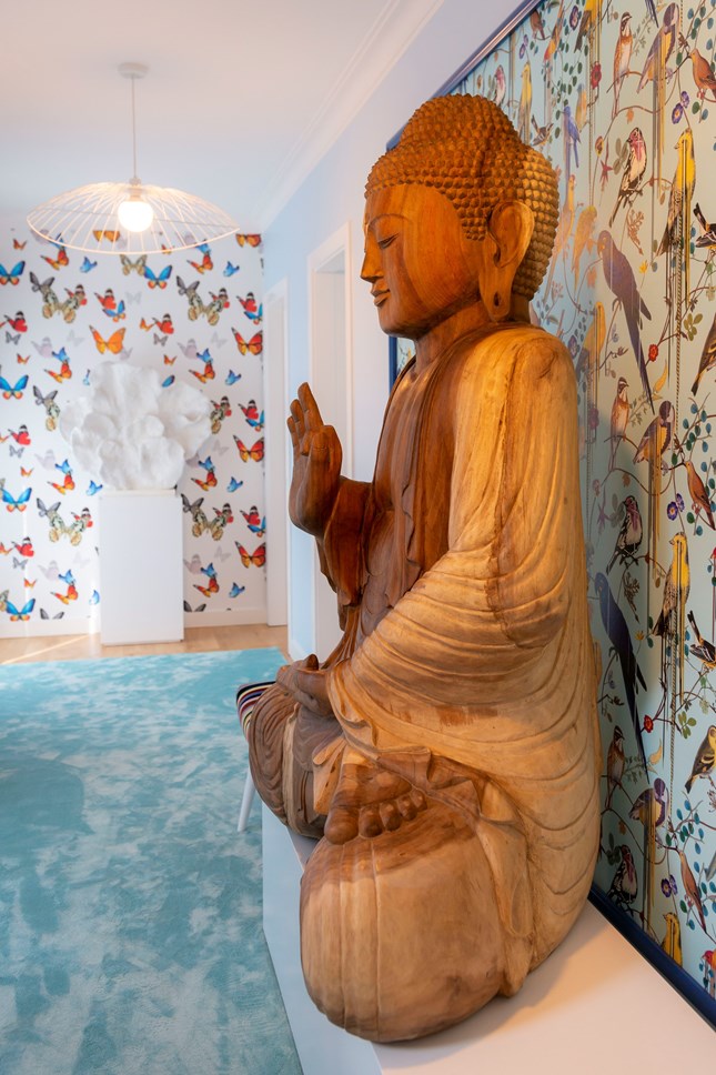 Cada divisão nesta casa tem uma combinação de cores e texturas únicas que confere uma personalidade e brilho em toda a moradia.